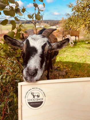 Die HOFPOST kommt in hochwertigen Holzkisten im Pfandsystem (Wert 10€) zu Euch und muss innerhalb von 14 Tagen nach Erhalt der Post wieder kostenlos mit dem beiliegenden Rücksendeetikett an den Schoderhof geschickt werden.